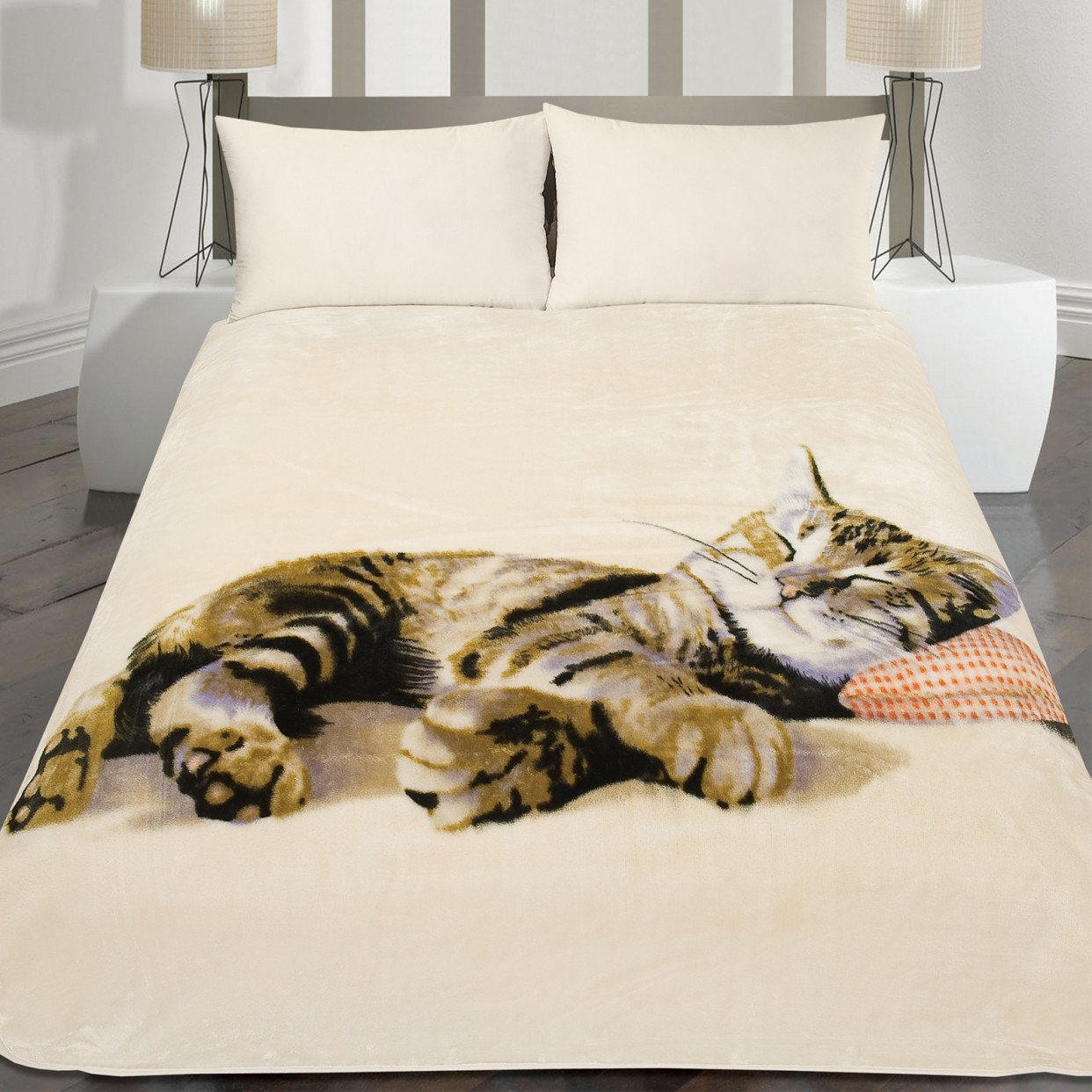 This large eye-opening sleeping cat animal print blanket from Dreamscene is ideal for use as a throw over furniture such as couches, beds and sofa beds. You will be grateful for its wonderful soft thick faux fur feel, keeping you staggeringly warm, whilst adding audacious style and colour to any room. The rich beige / cream background features a funky kitten sleeping blissfully on this bed blanket.