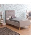 The perfect choice for a contemporary home, this retro-inspired bedframe personifies effortless chic. The simple padded frame is supported on pale wooden legs and covered with smart grey hopsack. A neat, buttoned headboard showcases restrained modern style. A great match for a no-fuss, minimalist setting and can be accessorised with colourful fabrics and linen to suit. Simple, Clean & Elegant Design Button Detail in Headboard 2 Stunning Grey Colourways.