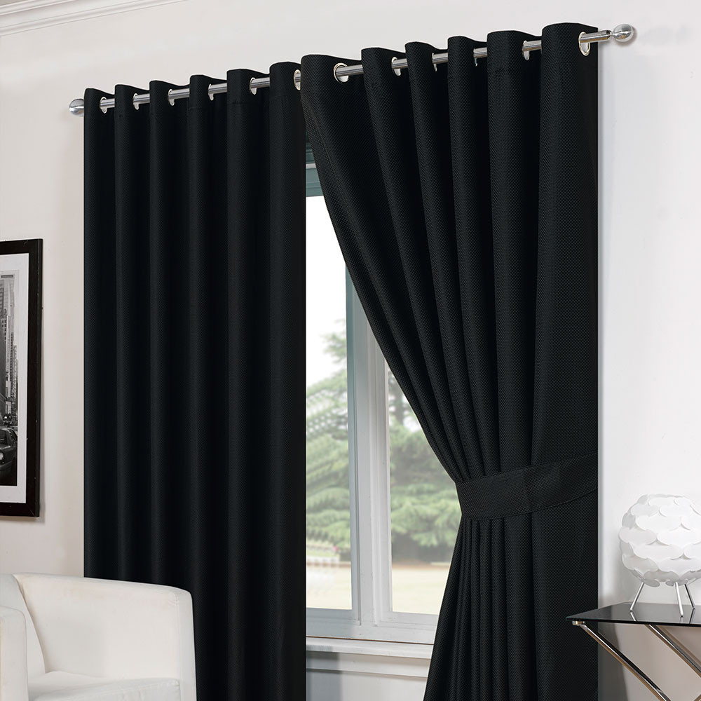Basket Weave Eyelet Curtains with Tiebacks - Black 66"x54"