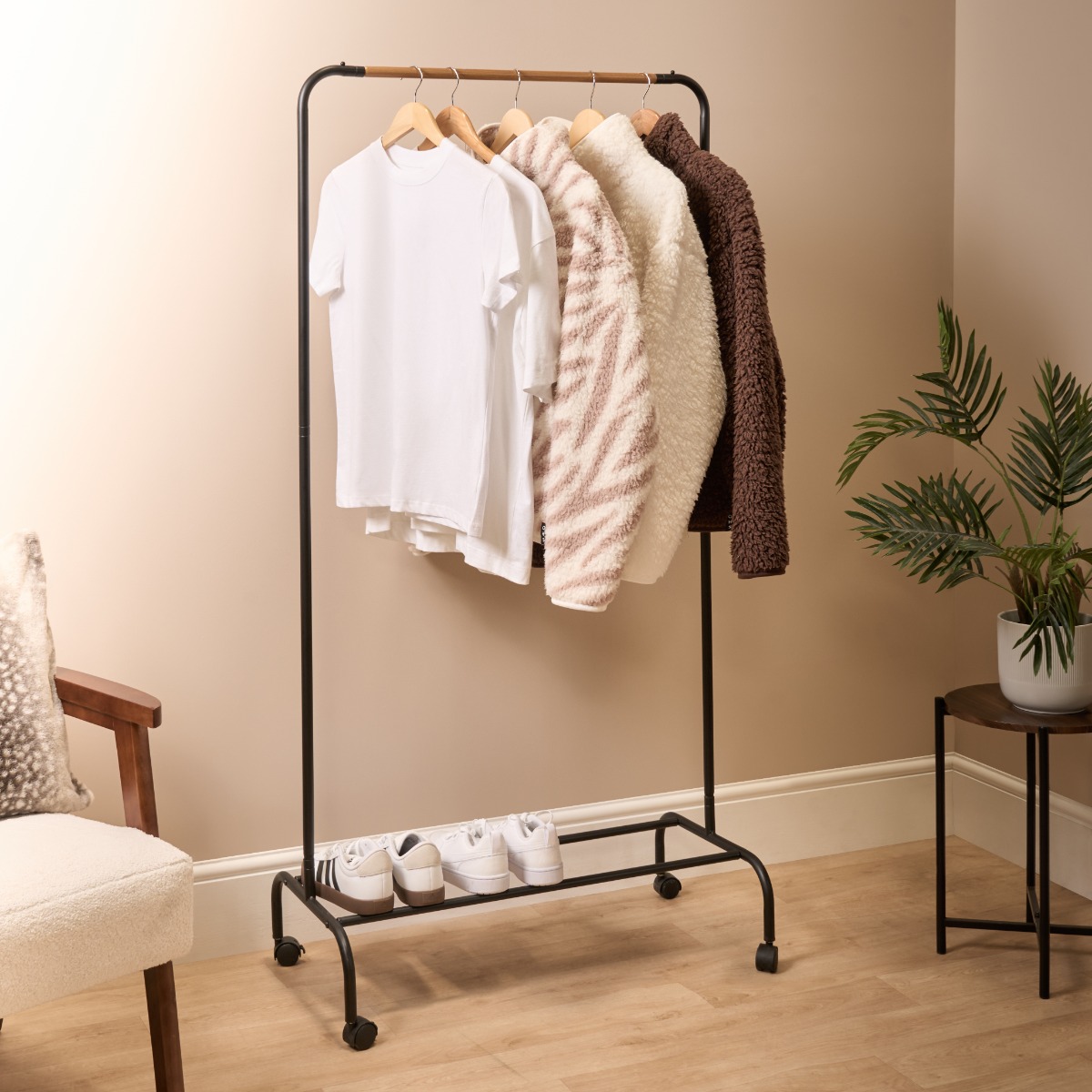OHS Heavy Duty Clothes Rail With Rack - Black/Wood