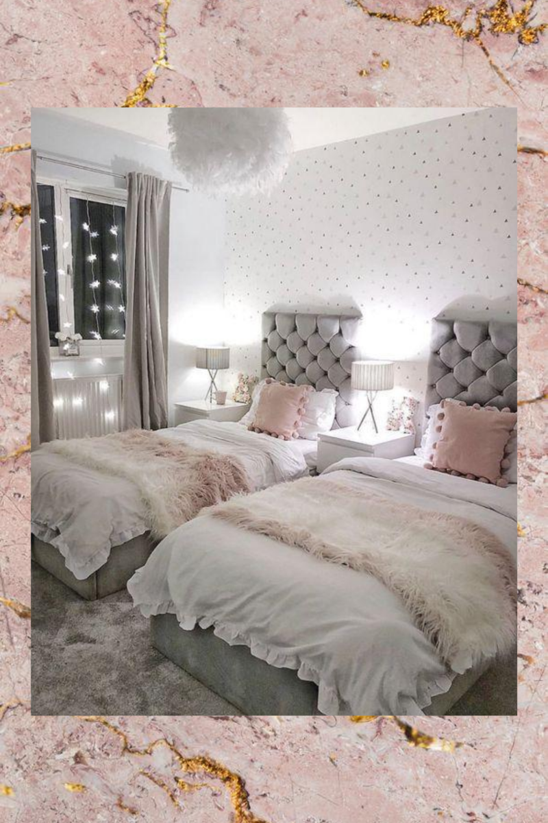Pink and grey is by far the biggest trend right now and is the perfect transition from little girls pink room to elegant teens room. By adding a splash of pink or a splash of grey it can help your room feel more homely and girly, without having to resort back to those barbie pink tones. This is a more sophisticated take on a youthful pink bedroom.