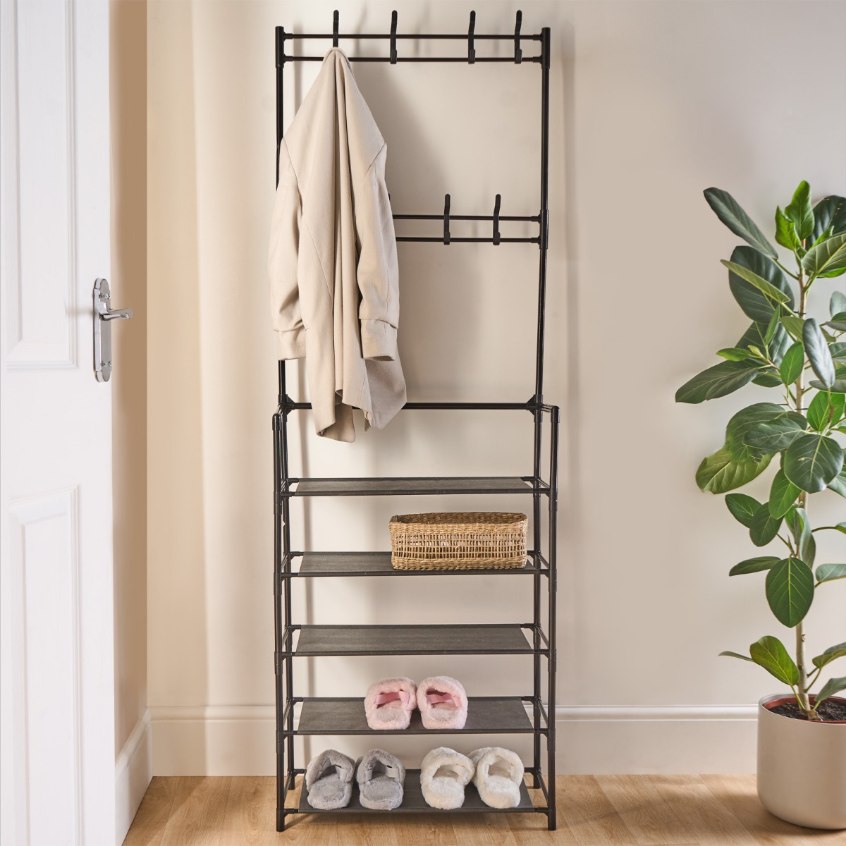 As the weather gets colder, everyone starts layering up — which means extra hanging space becomes a must. That’s where a garment rack comes in handy. When guests come over, it helps you avoid a pile of coats by the front door and keeps your entryway neat. Since it’s the first thing you and your guests see, having a tidy, organised spot for scarves, jackets, and shoes instantly makes the space feel calm and inviting.