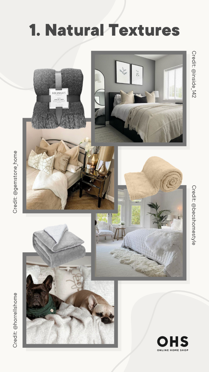 To channel this trend, we recommend the mohair throw range from our Highams collection, it is made from soft acrylic and is available in the neutral shades of light grey and charcoal grey, or if you are open to a pop of colour, duck egg and blush pink. Should mohair not be your texture of choice, we also offer a range of plush teddy fleece throws and bedding, again made in a variety of colours, that will help modernise your home during the season.