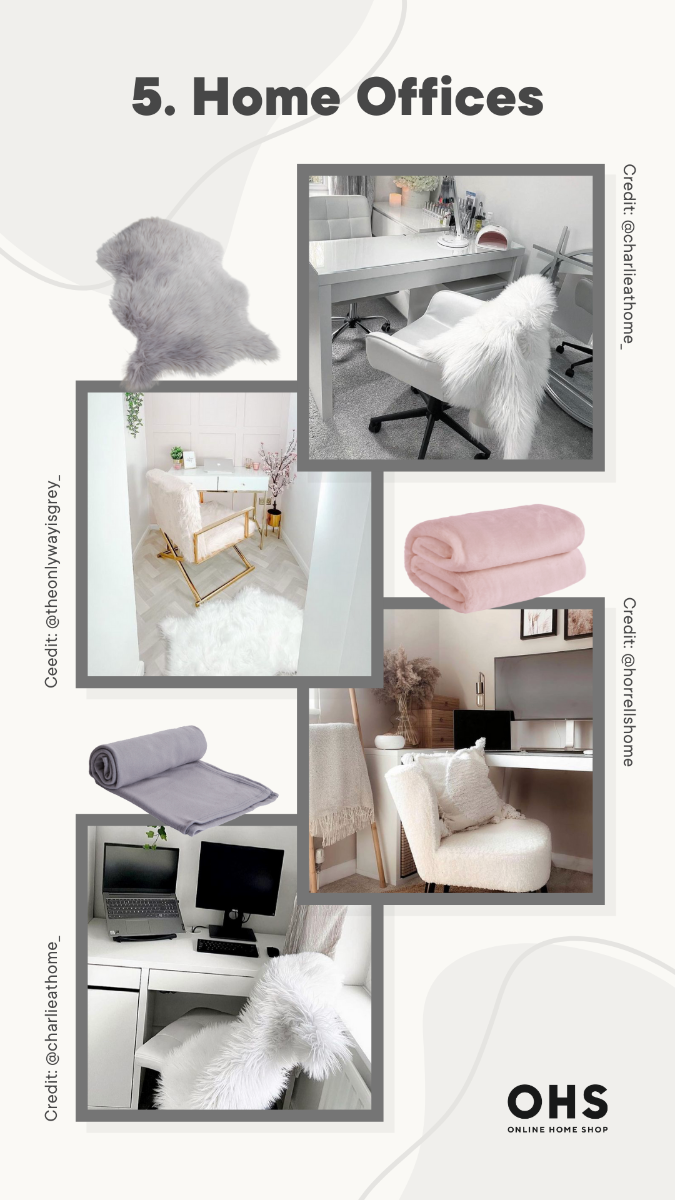 To freshen up and add further comfort to your home office this season, wherever it may be, pop a cosy throw nearby or over your desk chair. An influencer-fave product of ours is the Sienna sheepskin faux fur sheepskin rug in white, as although it is designed to provide underfoot warmth, it can be styled on your seating to make a statement as well.