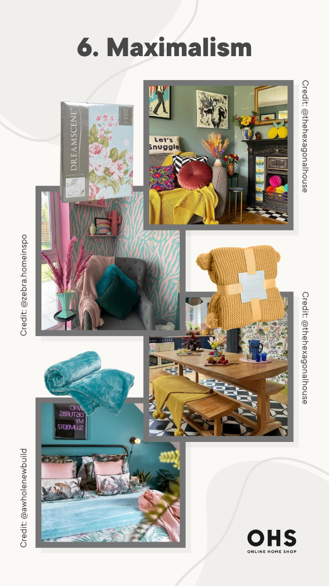 Tired of Scandi style minimalism that has dominated interiors over the past decade? Us too! This year, we are glad to see the major return of highly decorative and personal interiors with the maximalism trend. Homeowners are ditching ‘less is more’ and embracing ‘more is more’: more pattern, more texture and more colour. This style takes careful planning to achieve the desired look, the key being to pick one or two common tones to pull your eclectic mix of patterns together.