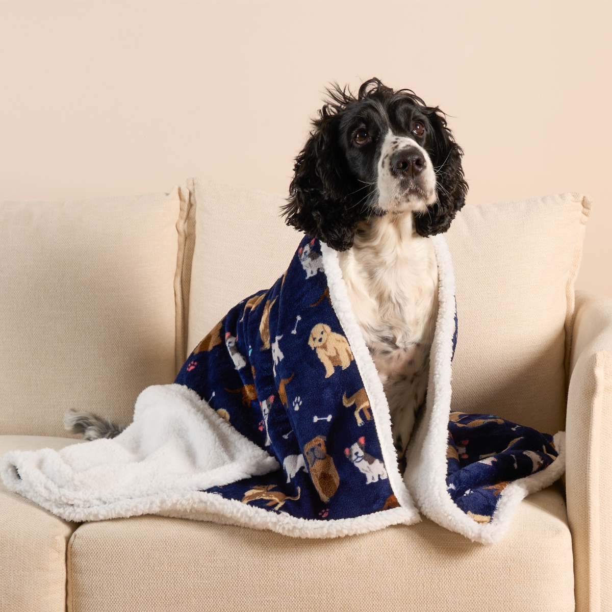 Blankets and throws are synonymous with dogs. Much like babies, they love the security and the warmth that a good blanket has to offer, and many have a routine that relies on being tucked in with their favourite once bedtime comes. Available in the matching prints with our pet beds, a gorgeous and cosy set-up is available now so your dog can live as they deserve; stylishly and comfortably. From lightweight, fleece options that feature paw prints (perfect for packing the car boot) to sherpa lined throws that promise warmth all year round – find their next favourite throw.
