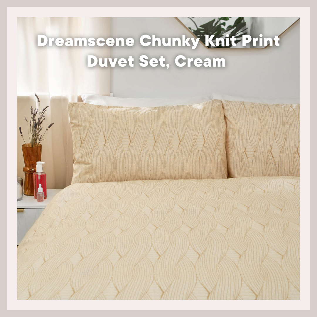 Dreamscene Chunky Knit Print Brushed Cotton Duvet Set, Cream from £13.99 £11