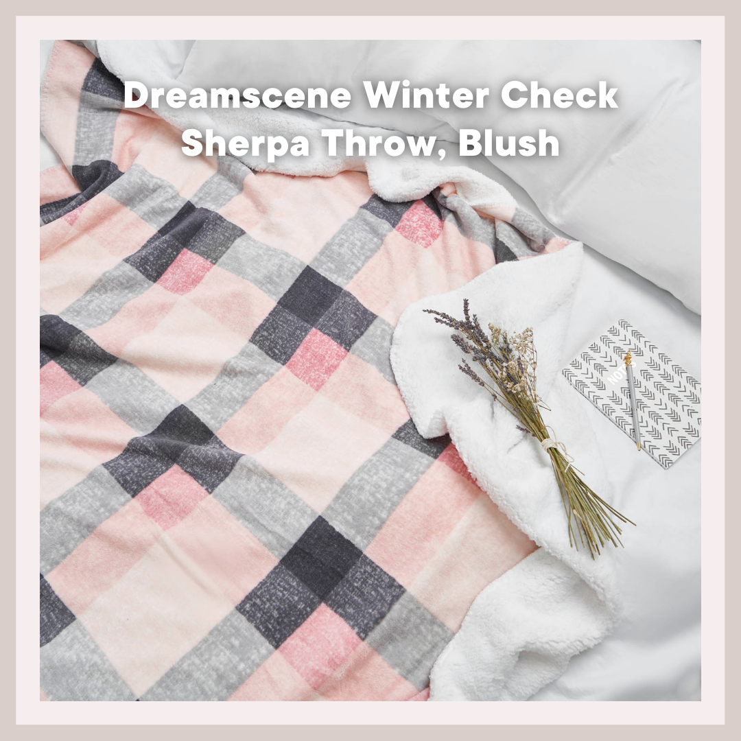 Dreamscene Winter Check Sherpa Throw, Blush - 150 x 180cm from £14.99 £12