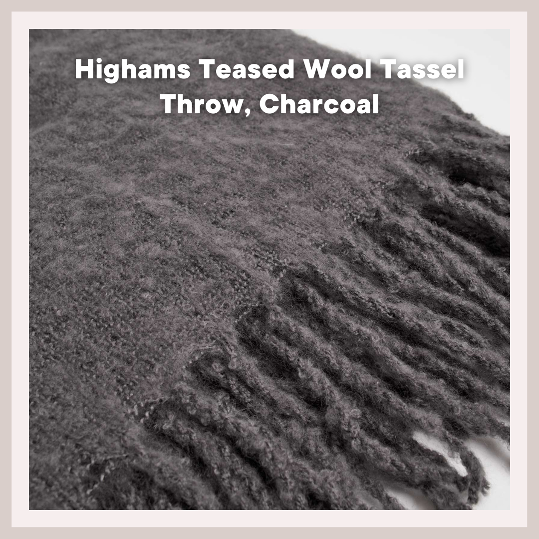 Highams Teased Wool Tassel Throw, Charcoal from £10.99 £8