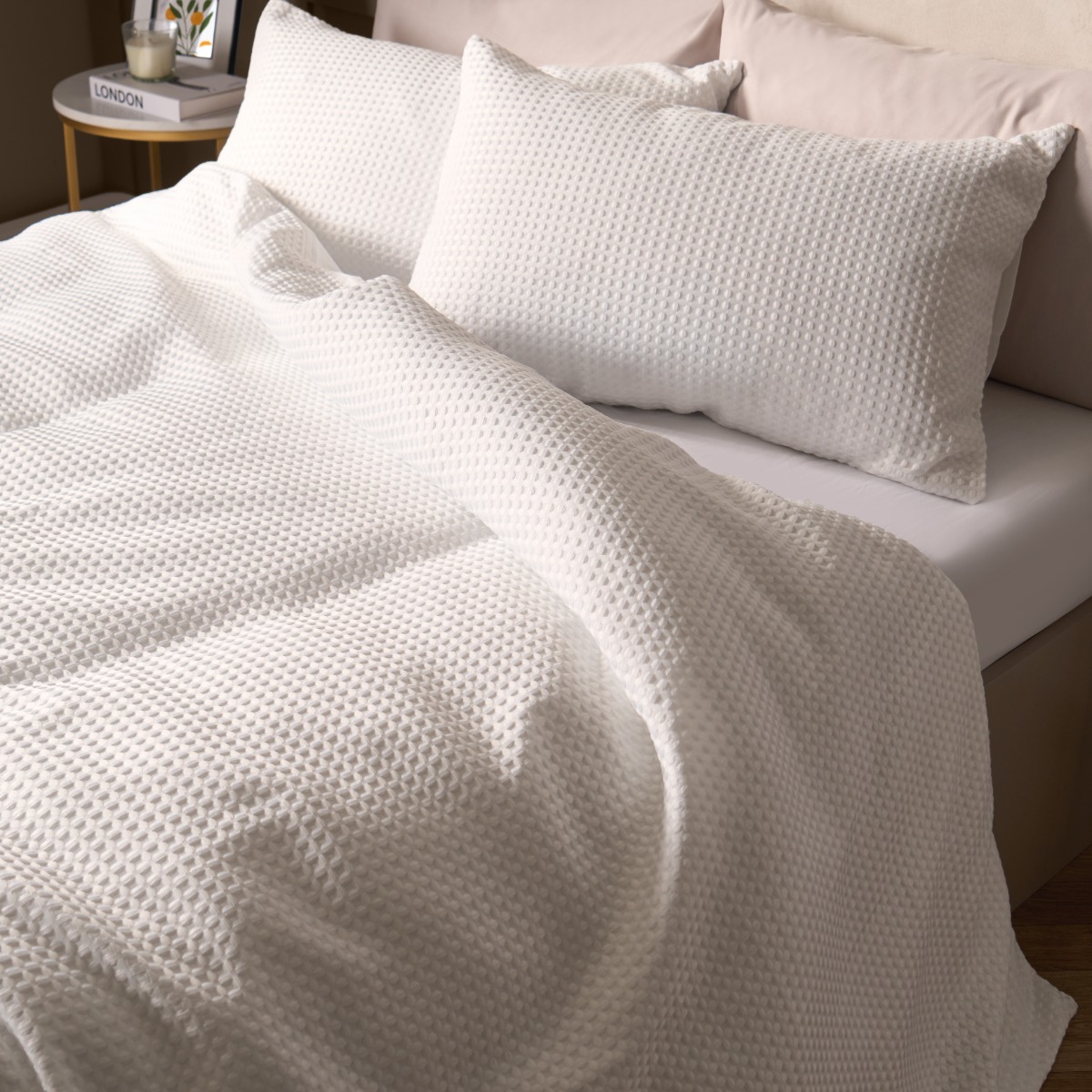 The first thing I do when the summer hits is swap out anything heavy or heat-trapping. Lighter fabrics make a world of difference. Think breathable, natural fibres like 100% cotton — soft, airy, and brilliant for letting heat escape. At OHS, we have a comprehensive range of cotton alternatives to your regular bedding that should do the trick. I recommend the luxe 400 Thread Count Cotton Sateen Duvet Set, available in three understated and versatile colours. The set is smooth and crisp, securing you a hotel like place to rest while cooling you down with its cotton construction.