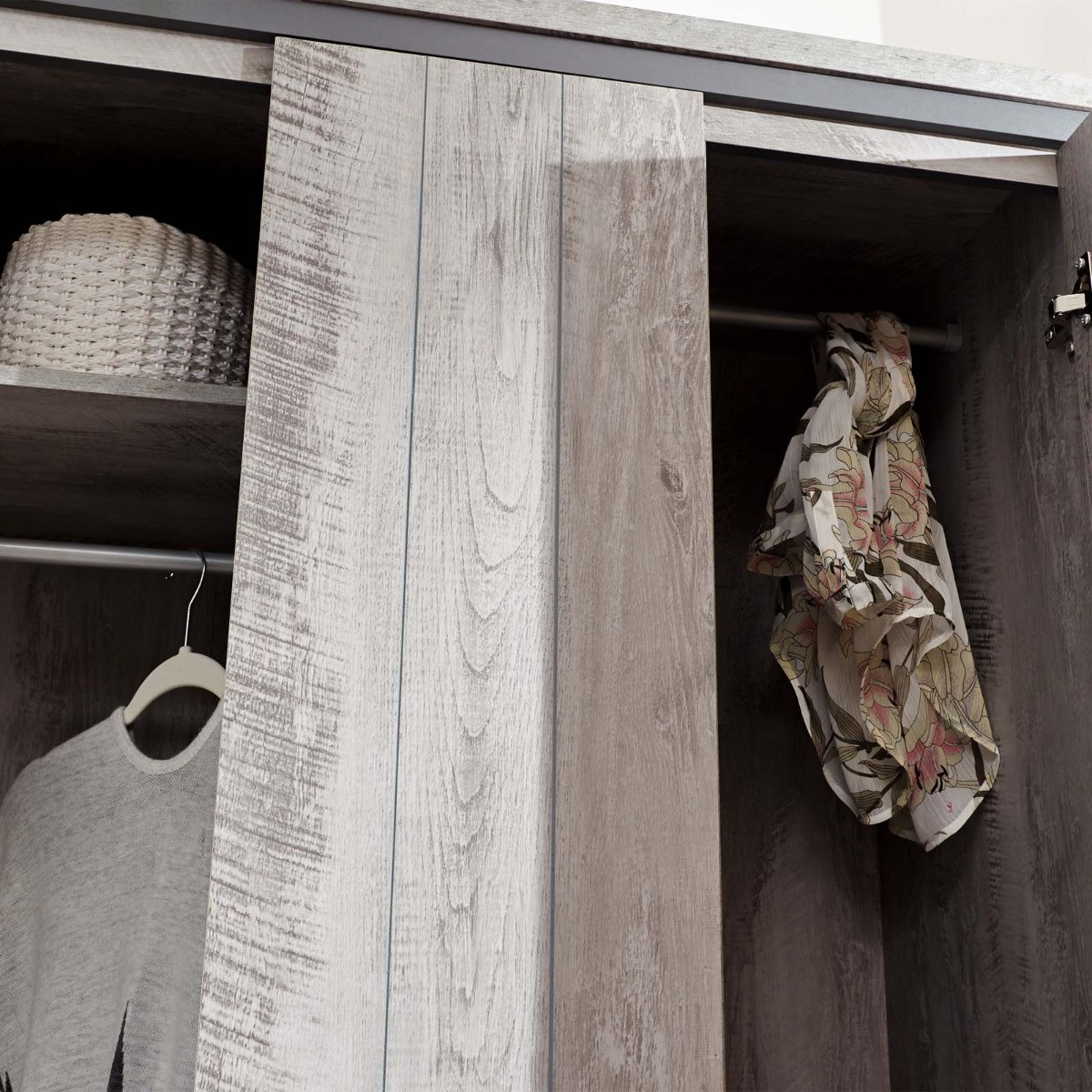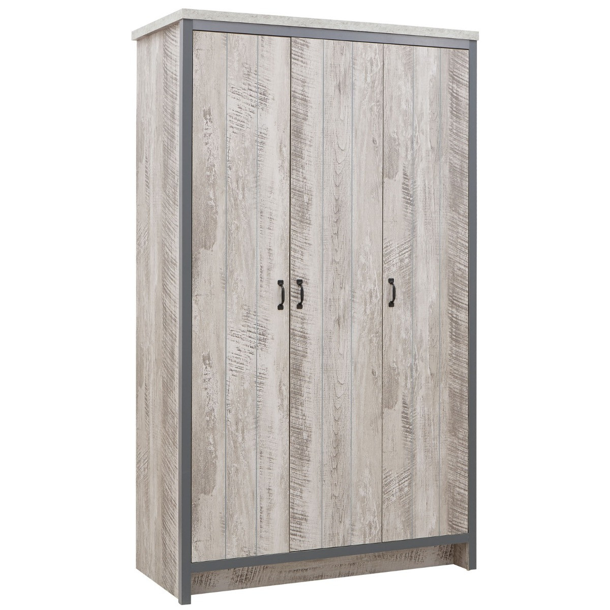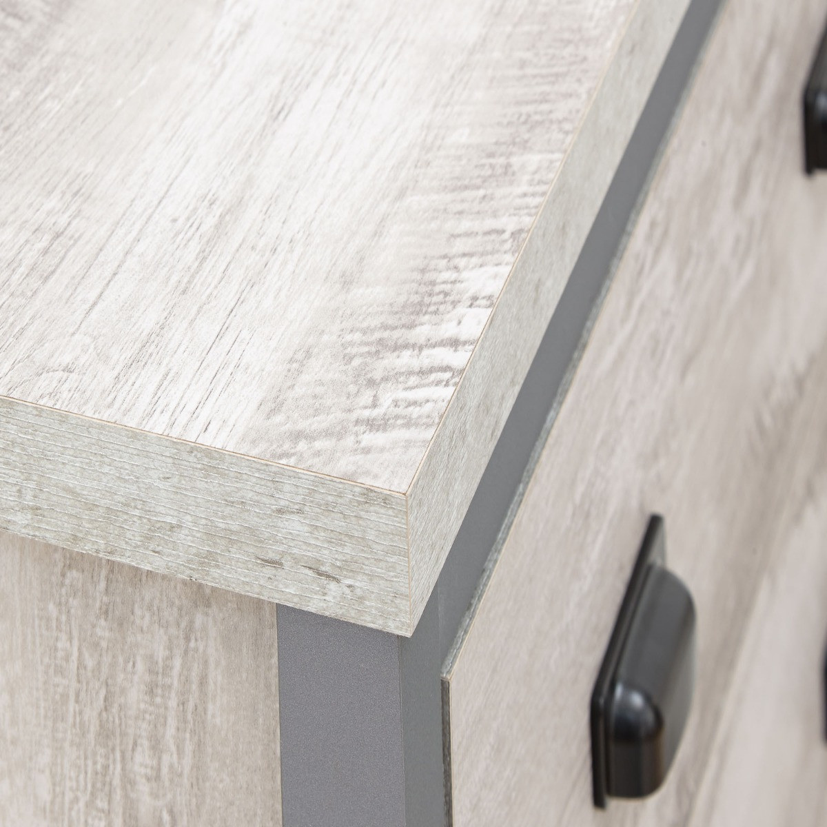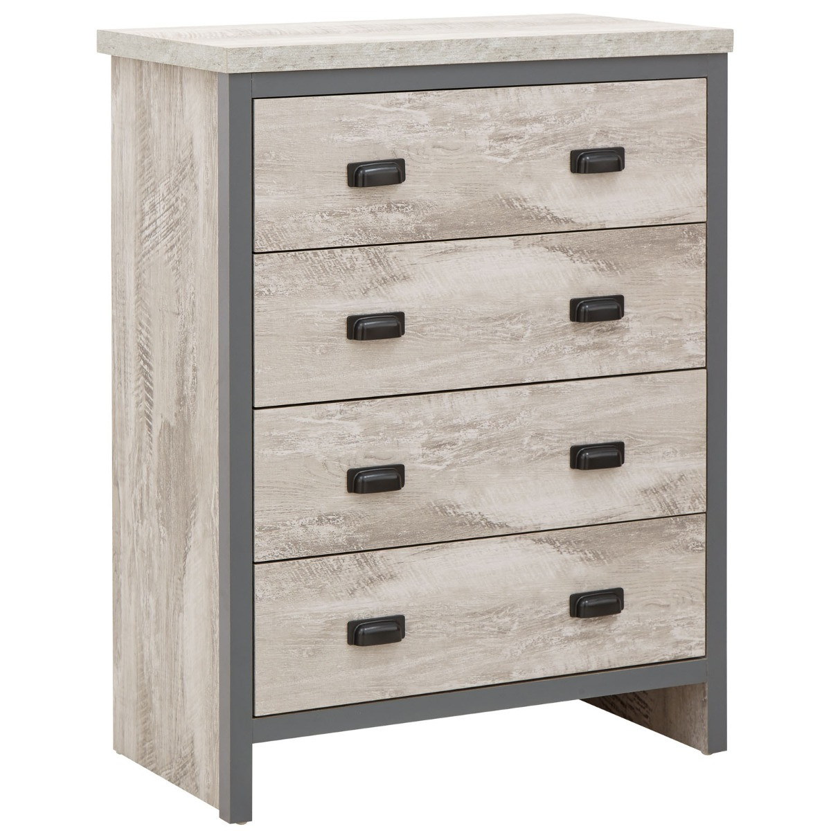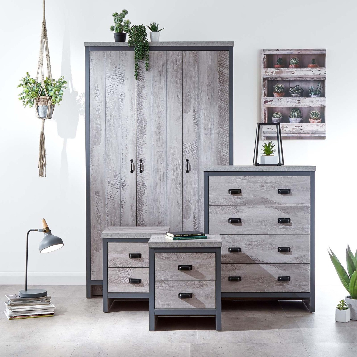 Transform your bedroom with this fabulous 4-piece furniture set. We think you'll love the combination of Boston's sturdy construction with the reclaimed-effect oak or grey finish that creates such a bold industrial look. The chunky panels – including 30mm tops – are neatly framed by the contrasting casing and accessorised by black metal handles that enhance the urban aesthetic. This set incorporates a three-door wardrobe with hanging and shelf space, four-drawer storage chest and a pair of two-drawer bedside tables. Outstanding. Wardrobe contains tall hanging space, perfect for full length dresses or long coats Wardrobe contains Versatile deep shelving for shoes, folded clothes or out of season clothing Drawers include drawer support for increased load weight Assembled Size: 0 x 0 x 0