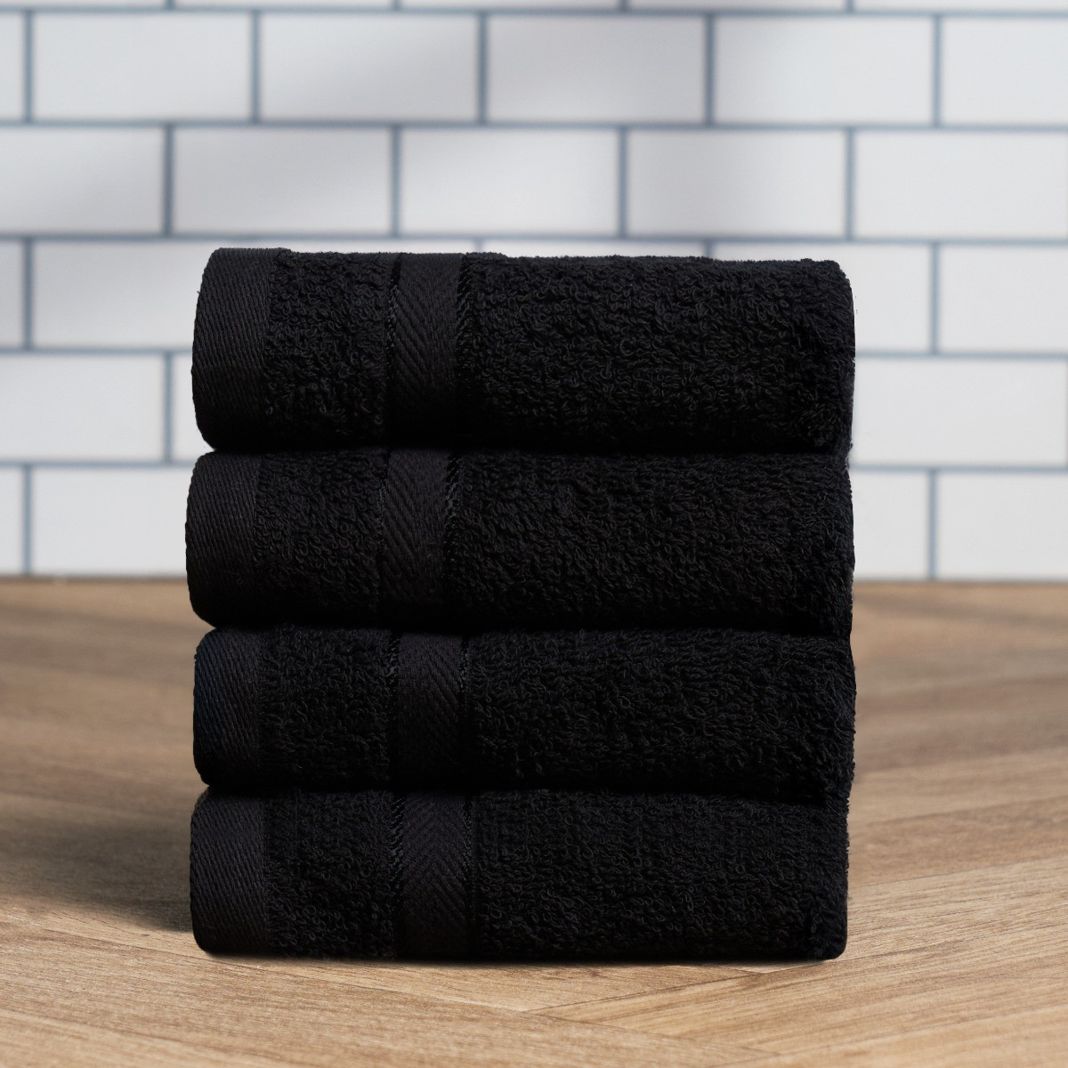 OHS 100% Cotton 4 Pack Face Cloths - Black