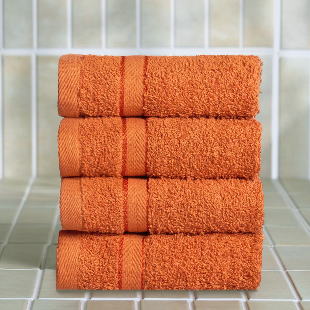 OHS 100% Cotton 4 Pack Face Cloths - Burnt Orange