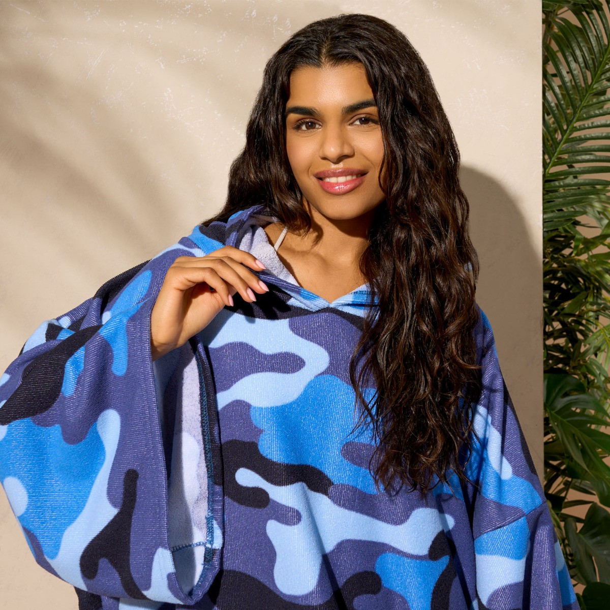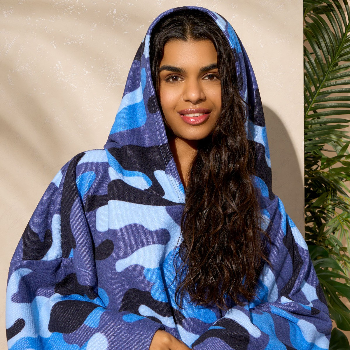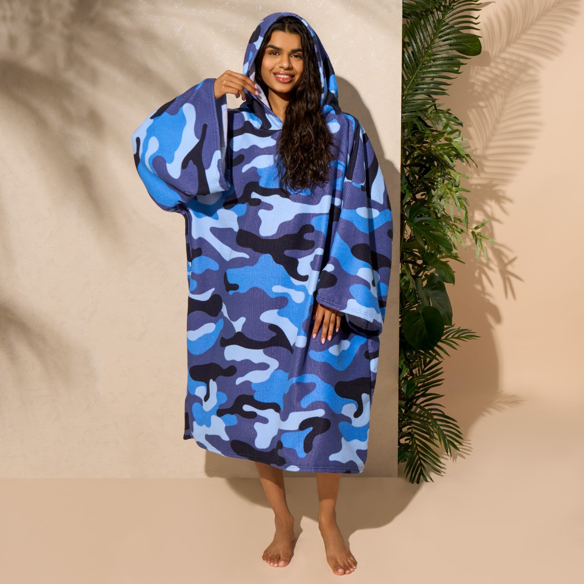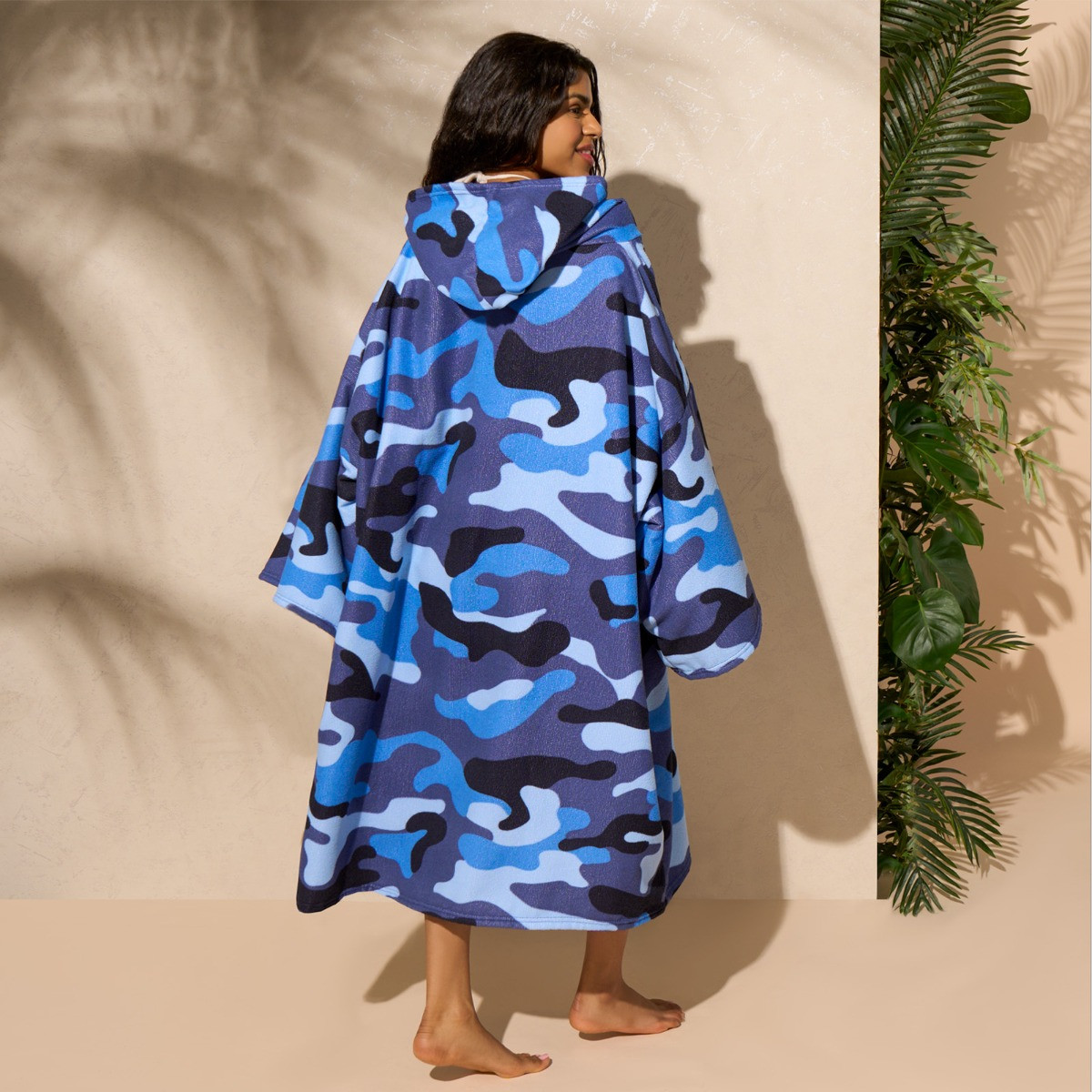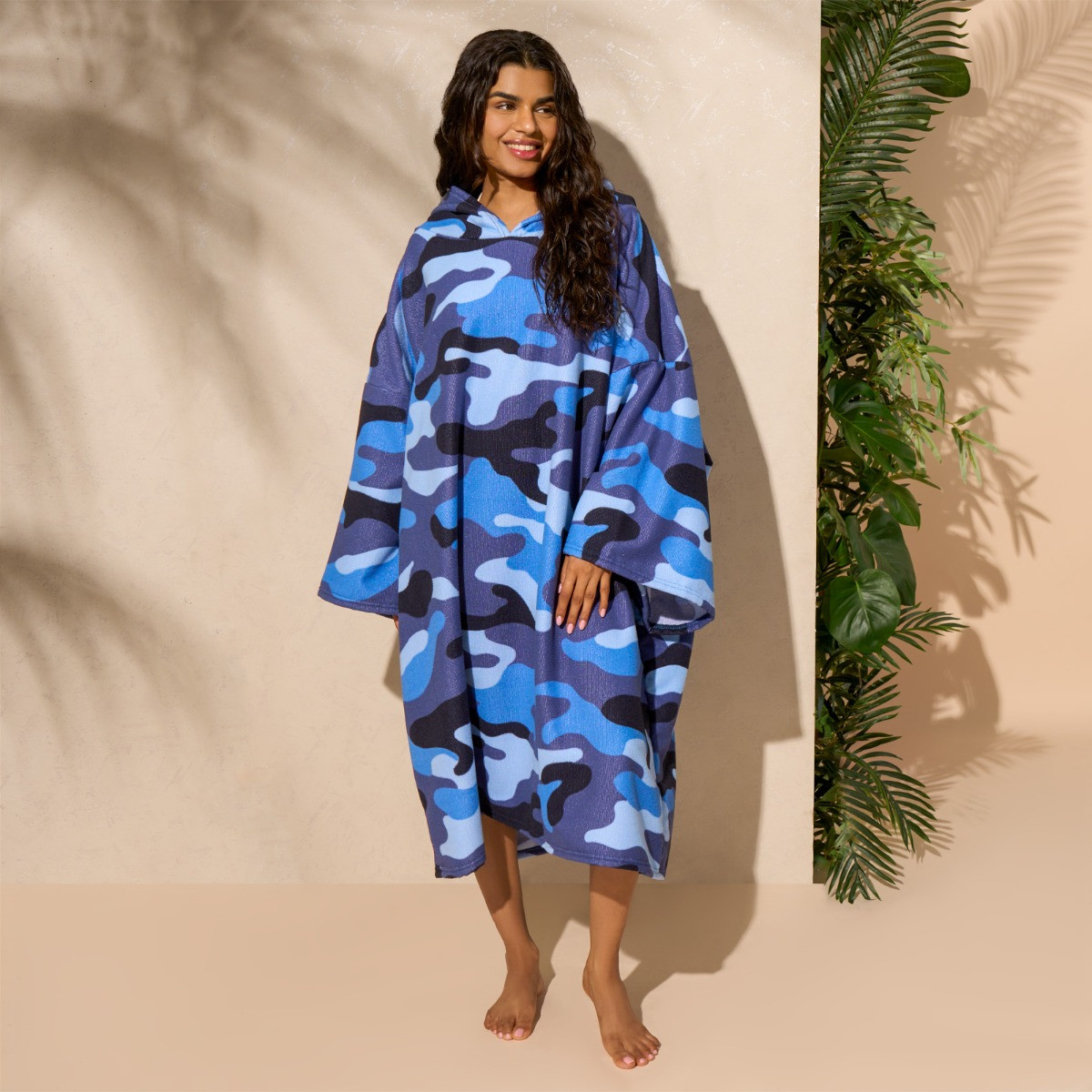 OHS Adult Towel Poncho Camo Print - Navy Blue