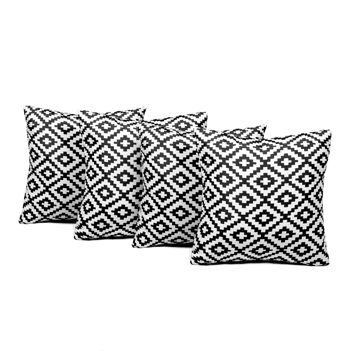 OHS Geo Print Water Resistant Outdoor Cushion Covers with Cushion Pads, 4 Pack - Black/White