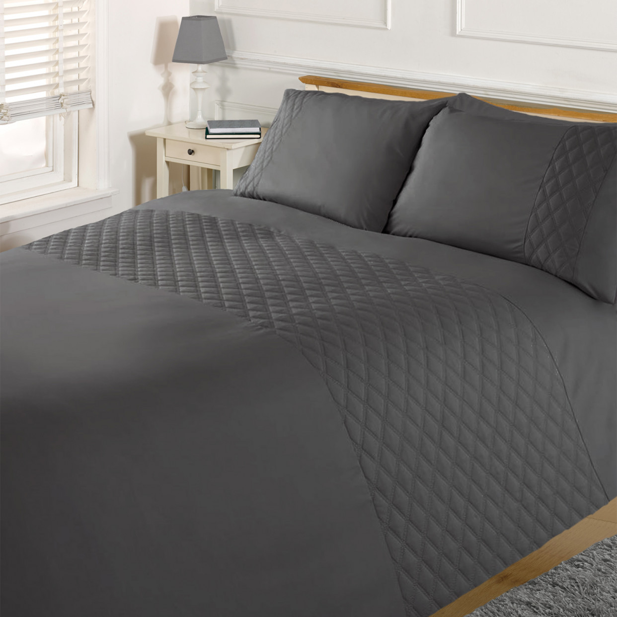 OHS Pinsonic Diamond Duvet Cover Set, Charcoal Grey - Double