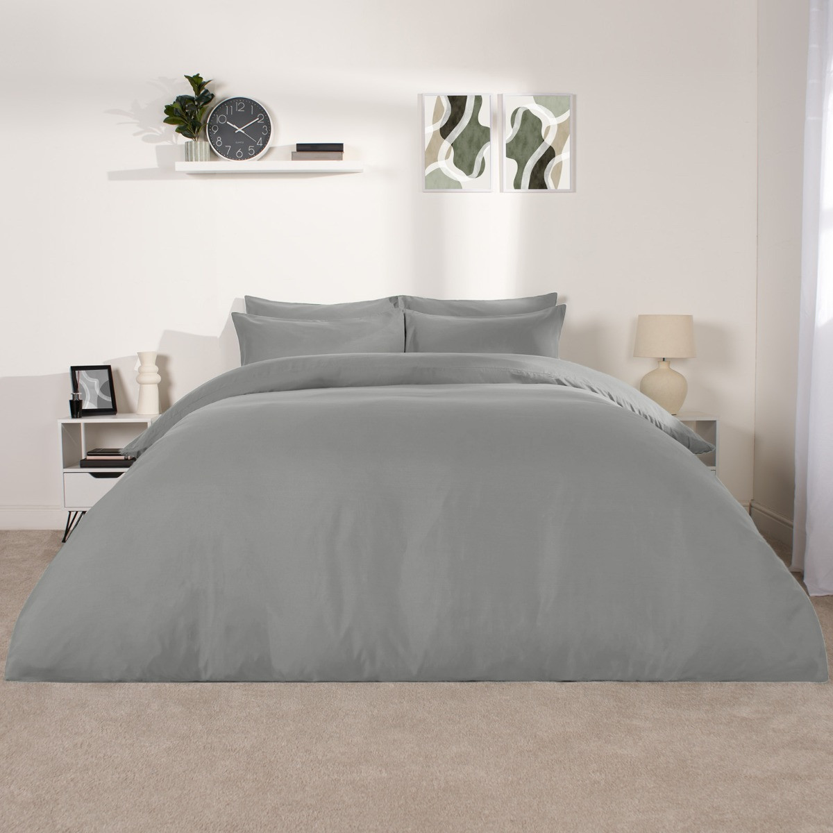 OHS Plain Duvet Cover Set, Grey - Double