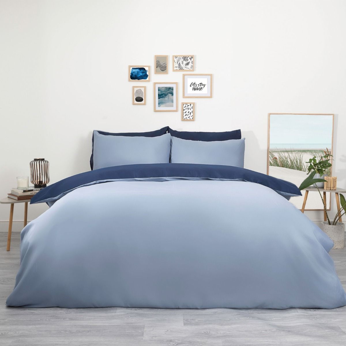 OHS Reversible Duvet Cover Set - Navy/Blue