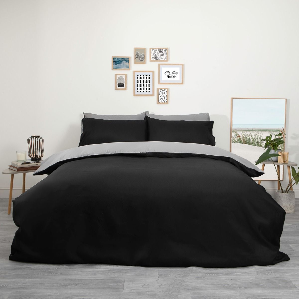 OHS Plain Duvet Cover Single Set - Black/Grey