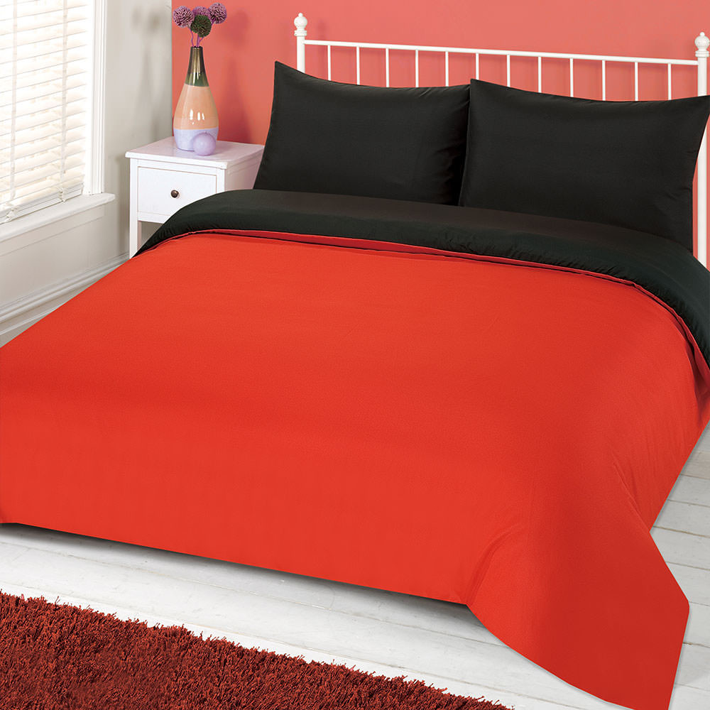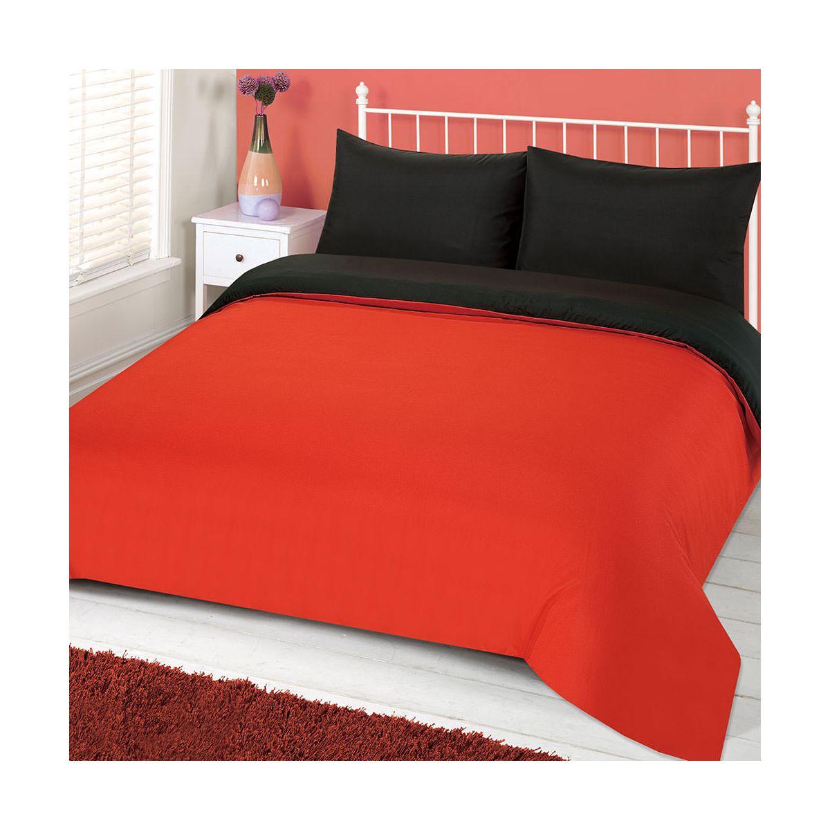 OHS Plain Duvet Single Cover with Pillowcase - Black/Red