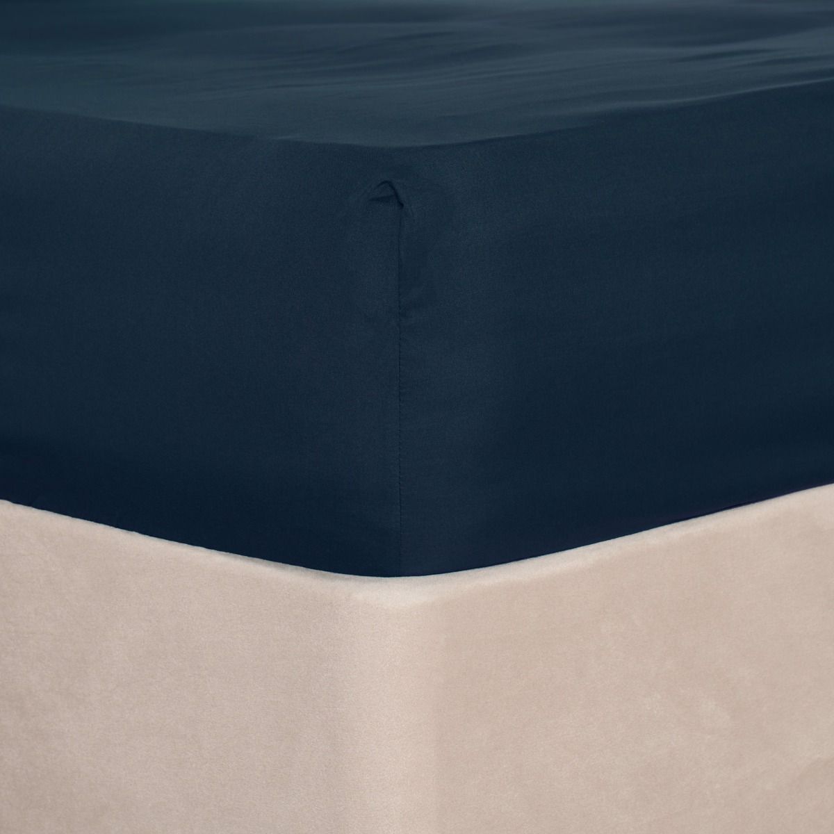 OHS Plain Dyed Fitted Double Sheet - Navy
