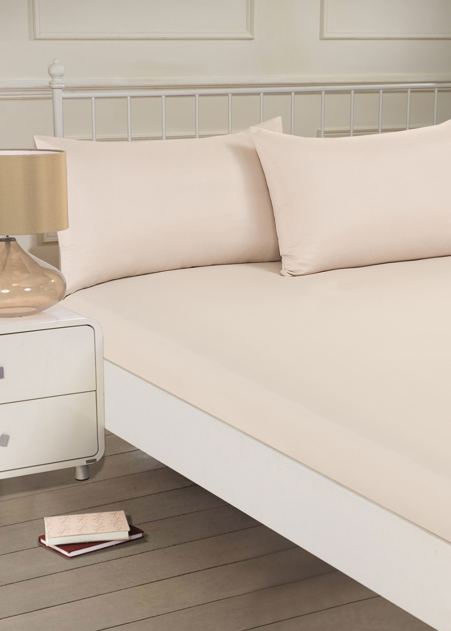 OHS Plain Dyed Single Fitted Sheet - Cream
