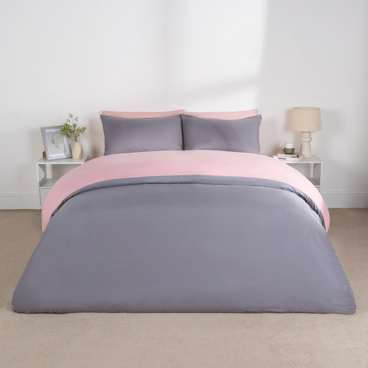 OHS Reversible Duvet Cover Set - Blush/Grey