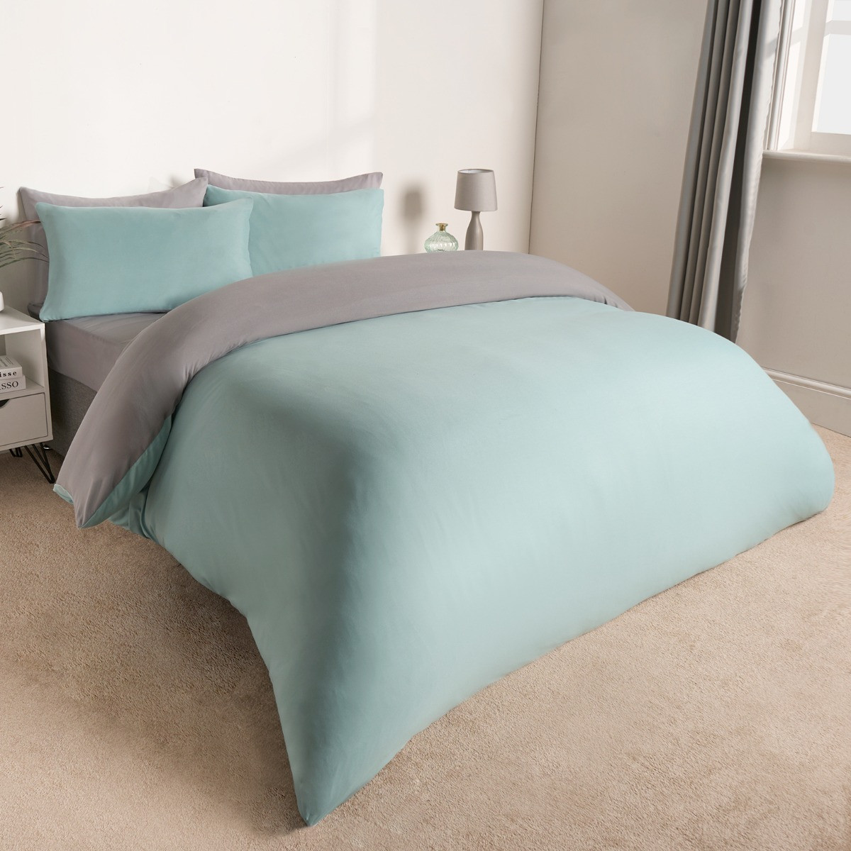 OHS Reversible Duvet Cover Set - Duck Egg/Grey