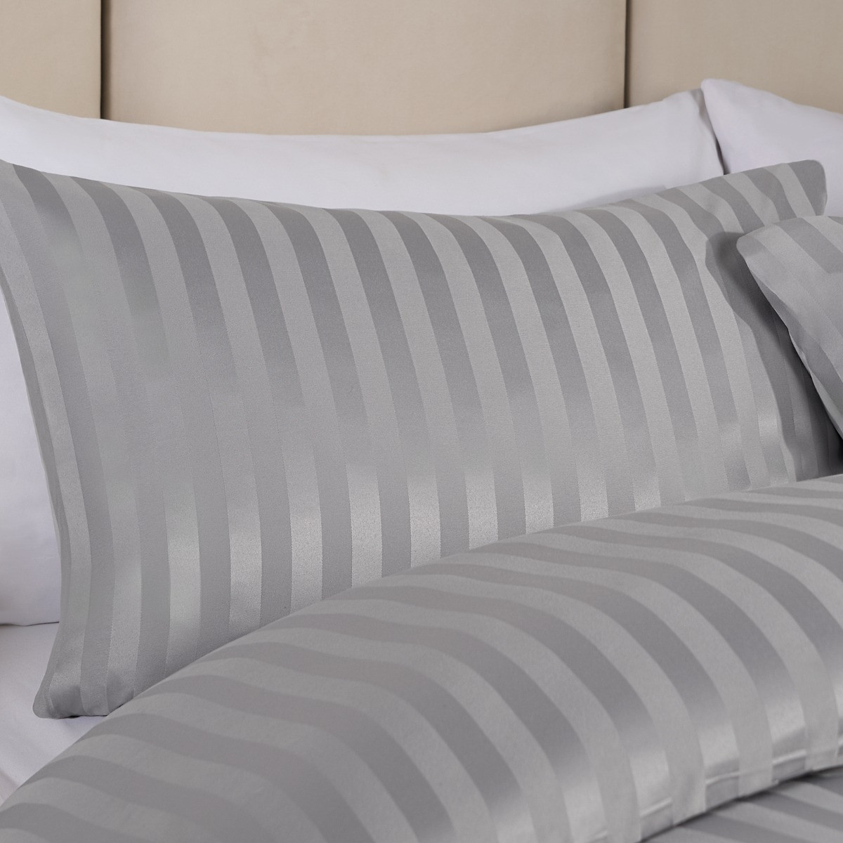 The OHS Satin Stripe Duvet Set epitomizes luxury and sophistication, transforming any bedroom into a serene retreat. Crafted with exquisite attention to detail, this duvet set features a timeless satin stripe pattern that adds a touch of elegance to your bedding ensemble. The silky-smooth texture of the fabric offers a soft and gentle feel against the skin, ensuring utmost comfort for a restful night's sleep. Designed to elevate your bedding experience, the OHS Satin Stripe Duvet Set not only enhances the aesthetic appeal of your bedroom but also provides a cosy and inviting environment to unwind.Available in the following sizes: