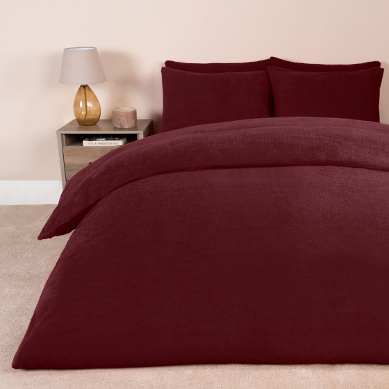 OHS Teddy Fleece Duvet Cover Set, Burgundy - Single