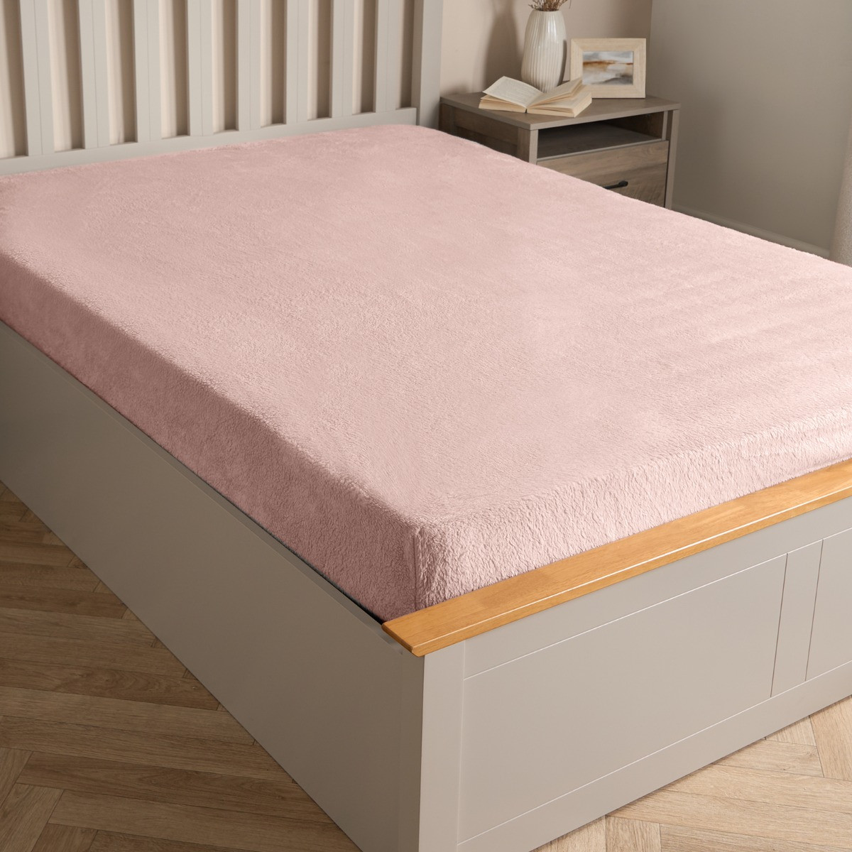 OHS Teddy Fleece Fitted Sheet, Blush Pink - Single