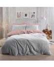 OHS Teddy Fleece Reversible Duvet Cover Set - Blush Pink/Grey
