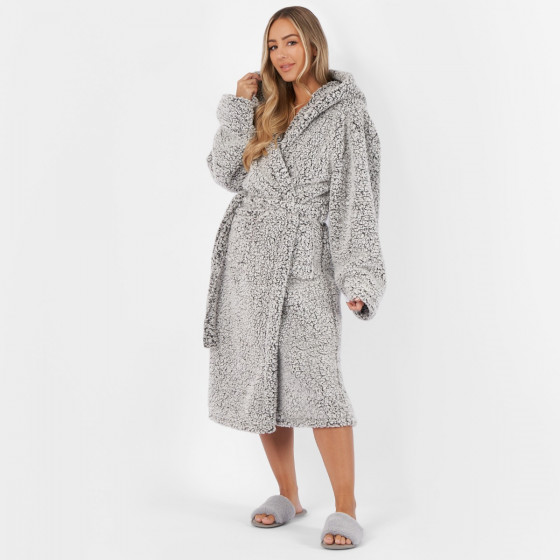 The Teddy Marl Dressing Gown from OHS is a warm, soft, and attractive comfort essential, perfect for relaxing and lounging in. This fleece robe features a generous hood to keep your head as cosy as your body, as well as two useful pockets and a belt tie to adjust its fit to your liking, keeping you comfortable at all times. Perfect for those chillier nights, this charming dressing gown is great for retaining warmth while you watch tv, cosy up with a good book, or start off your day in the mornings.
