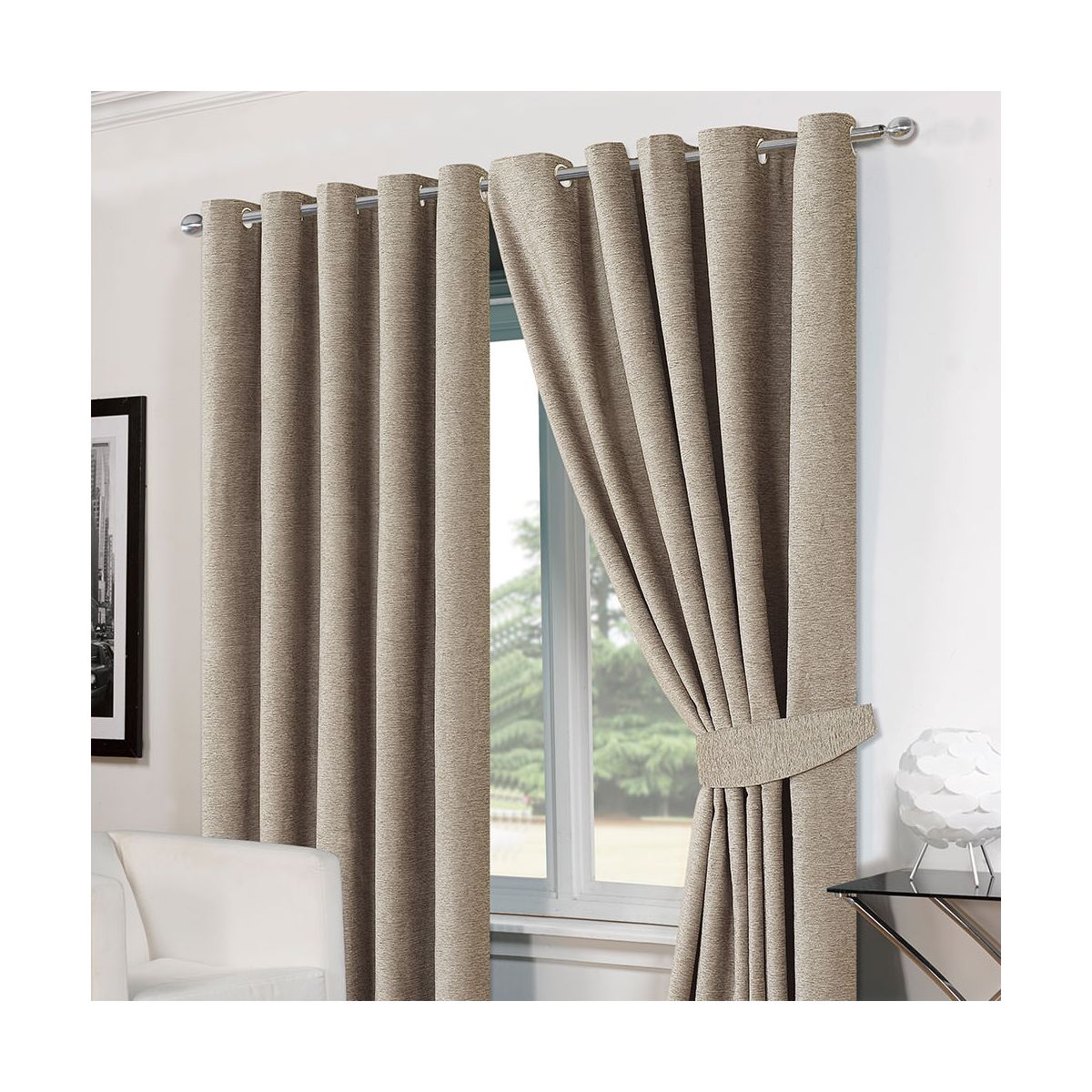 Energy efficient for maximum insulation, keeps heat in / keeps light out. These heavy weight woven chenille curtains will transform your room with its efficient colouring and unique super soft material. The eyelet curtains are lined and come with free tie backs. Easy to hang and easy care.