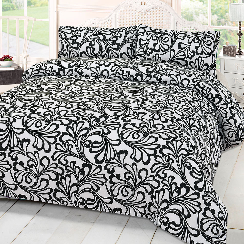 Damask Duvet Cover Bedding Set With Pillowcases Black Single