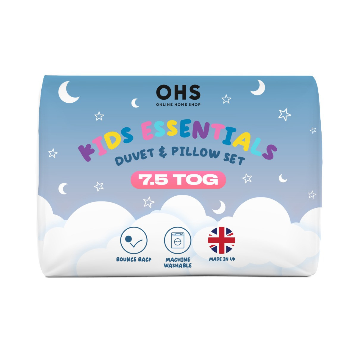 OHS Kids Bed Set 7.5 Tog Duvet & Pillow, Off White - Single