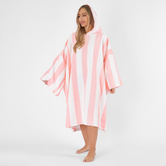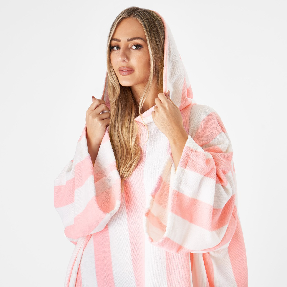 OHS Adult Towel Poncho Stripe Print – Blush Pink