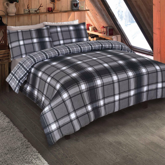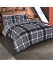 OHS Aspen Brushed Cotton Check Tartan Duvet Cover Bedding Set - Grey - Double