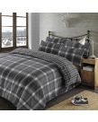 OHS Aspen Brushed Cotton Check Tartan Duvet Cover Bedding Set - Grey - Super King