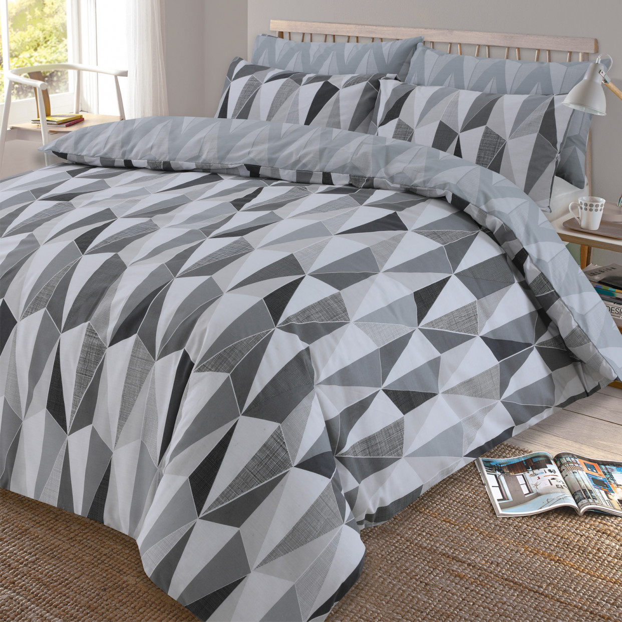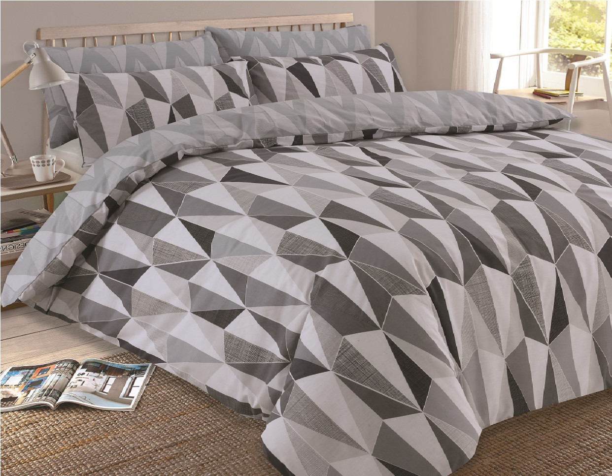 This 2-in-1 reversible duvet cover set from OHS's Premium range will be sure to modernise your room with it's geometric triangle shapes design. The reverse side features a modern inverted shapes pattern and the set comes with matching pillow case(s). Made from a soft polycotton blend, 50% cotton and 50% polyester, this bedding set is soft, comfortable and durable, allowing for a relaxing nights sleep. Available in the following sizes:-