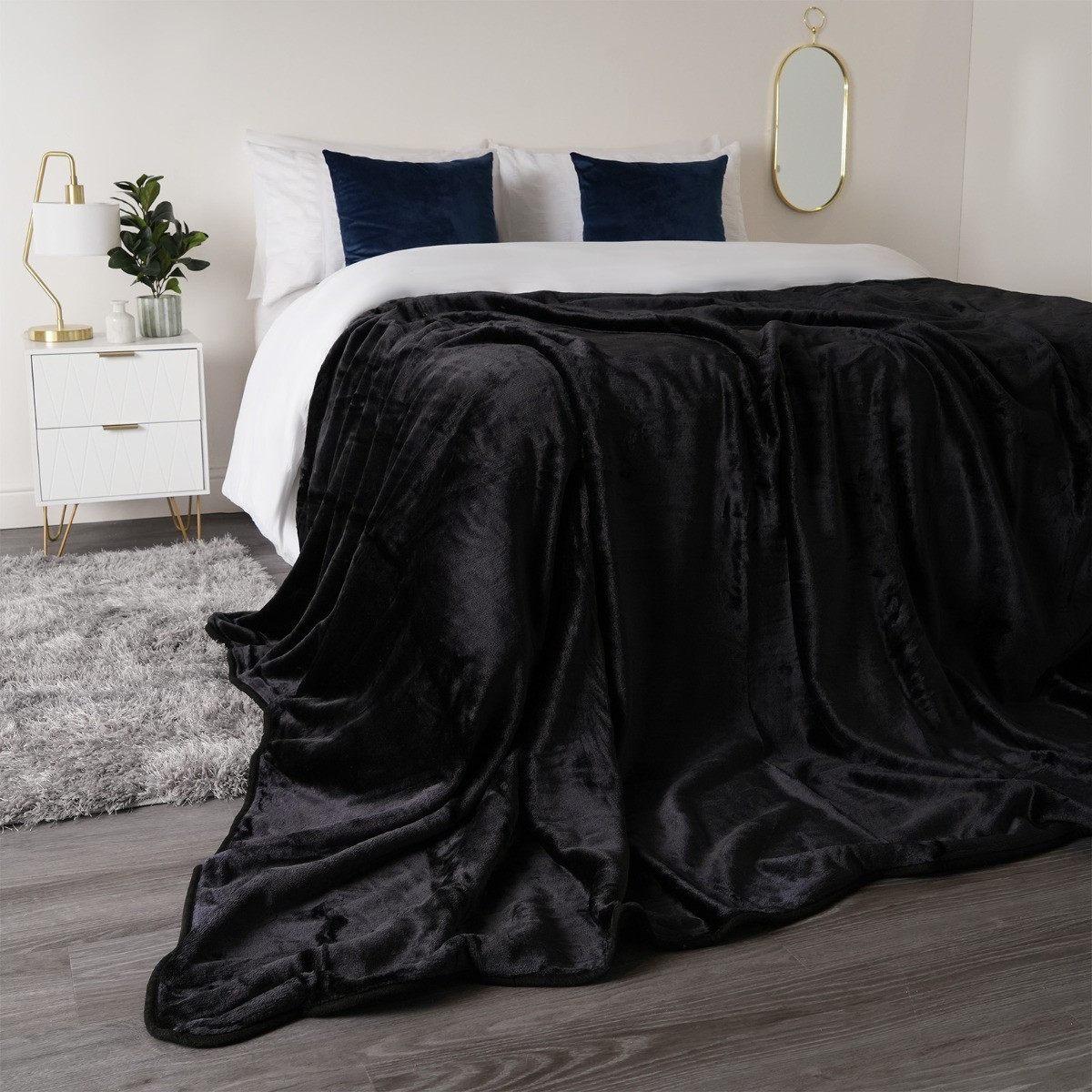 OHS Black Luxury Faux Fur Mink Throw 150x200cm