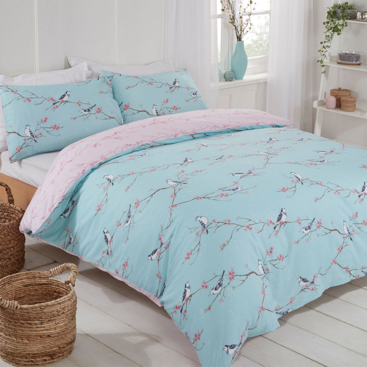 A 2-in-1 reversible bird print and vintage floral design from the OHS Premium range providing vibrant tones for your bedroom. The face features blossom trees lovingly hosting birds whilst the reverse contains a more gentle oriental floral blossom tree pattern. This set comes with matching pillow case(s) to complete the look. This modern duvet cover is made from a soft polycotton blend, 50% cotton and 50% polyester. The bedding set is soft, comfortable and durable, allowing for a relaxing nights sleep. Available in the following sizes:-