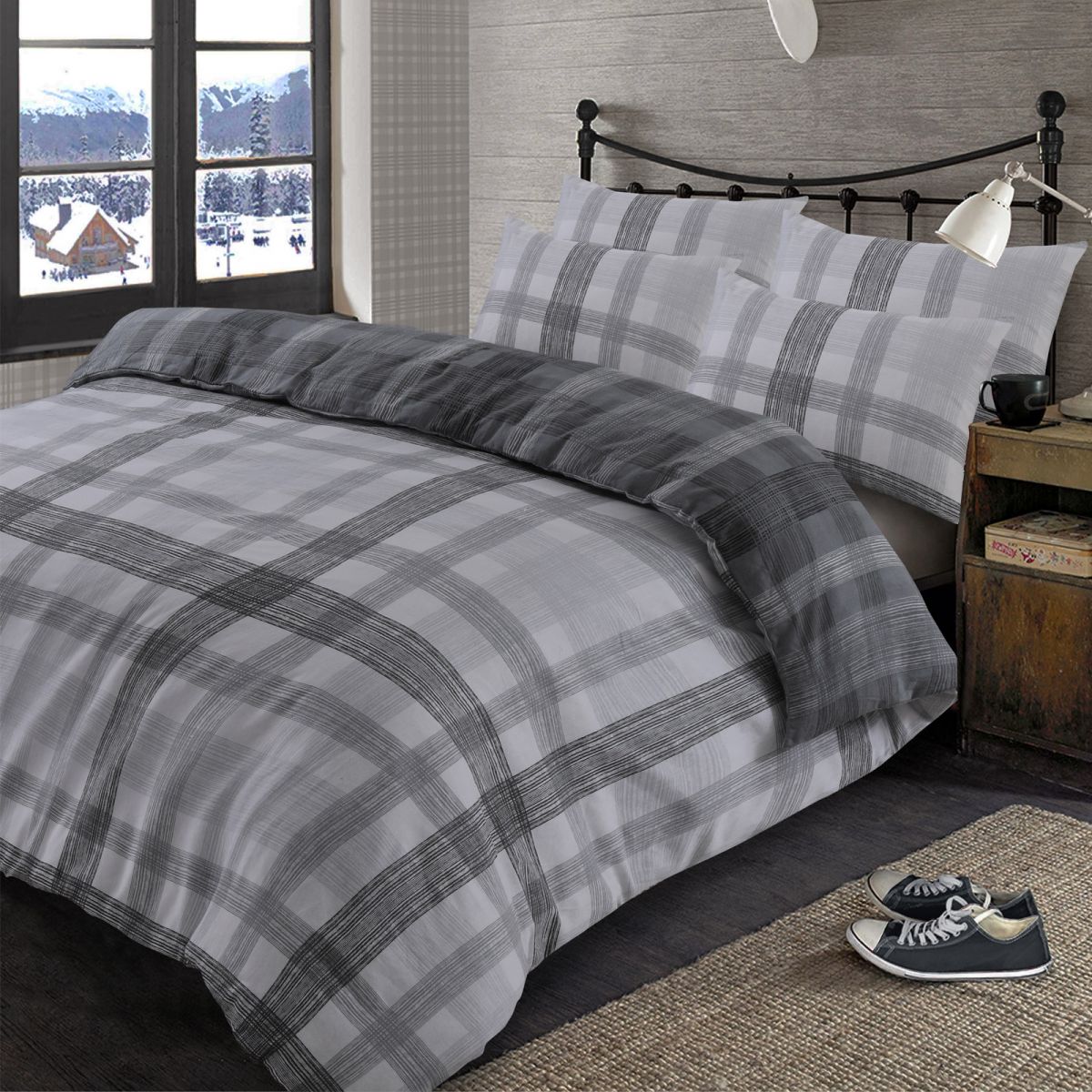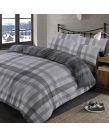 OHS Boston Brushed Cotton Check Tartan Duvet Cover Bedding Set - Grey - Single