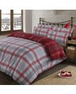 OHS Boston Brushed Cotton Check Tartan Duvet Cover Bedding Set - Red - Double