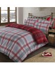 OHS Boston Brushed Cotton Check Tartan Duvet Cover Bedding Set - Red - Single