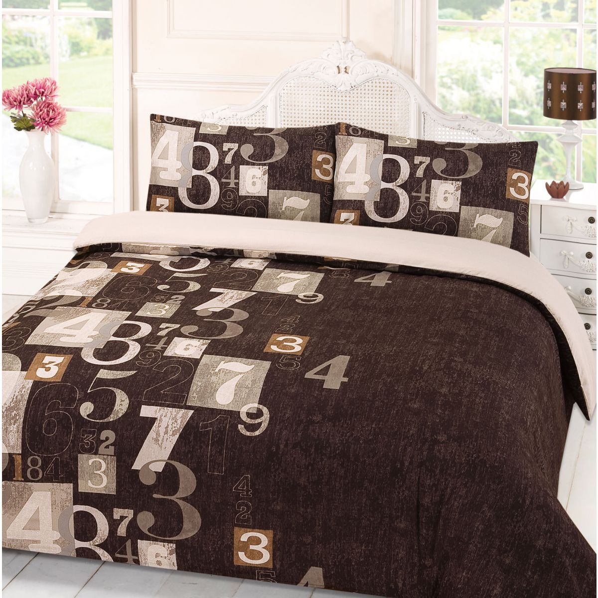This Digit duvet set will transform your bedroom with a modern appearance and feel by adding this soft duvet cover set to your bedroom decor. The Digit bedding has a stylish geometric number design and plain reversible colour scheme. Comes with matching pillowcases. This duvet set is made from 100% polyester making it soft and comfortable.
