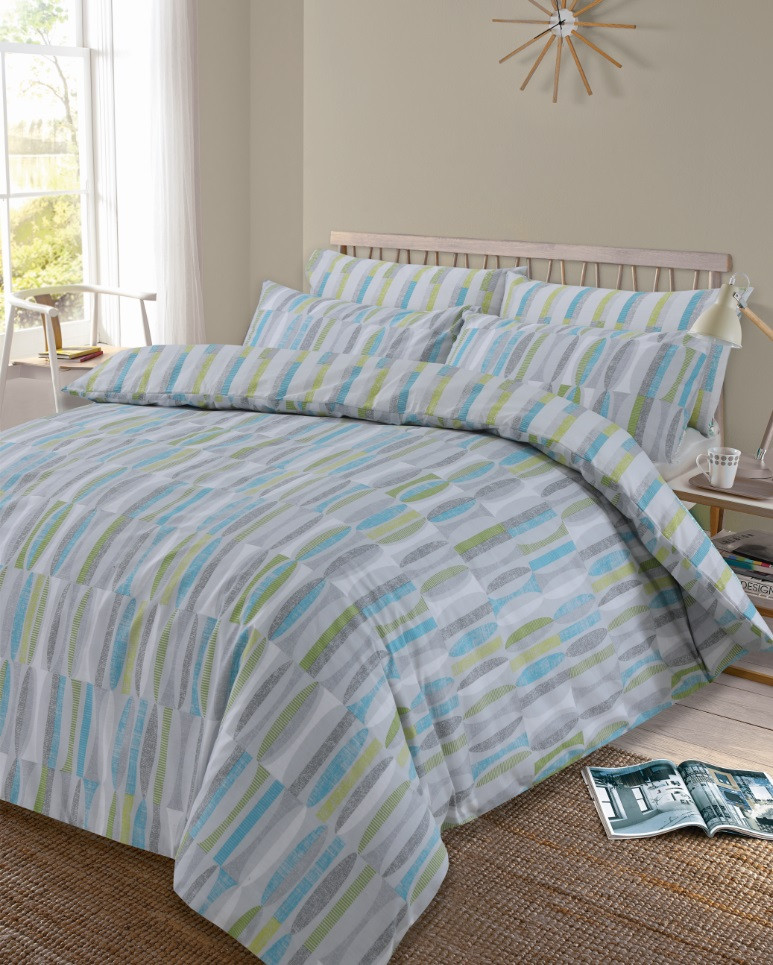 This 2-in-1 reversible duvet cover set from OHS's Premium range will be sure to modernise your room with it's geometric ellipse design. The reverse side features a modern geometric stripe pattern and the set comes with matching pillow case(s). Made from a soft polycotton blend, 50% cotton and 50% polyester, this bedding set is soft, comfortable and durable, allowing for a relaxing nights sleep. Available in the following sizes:-