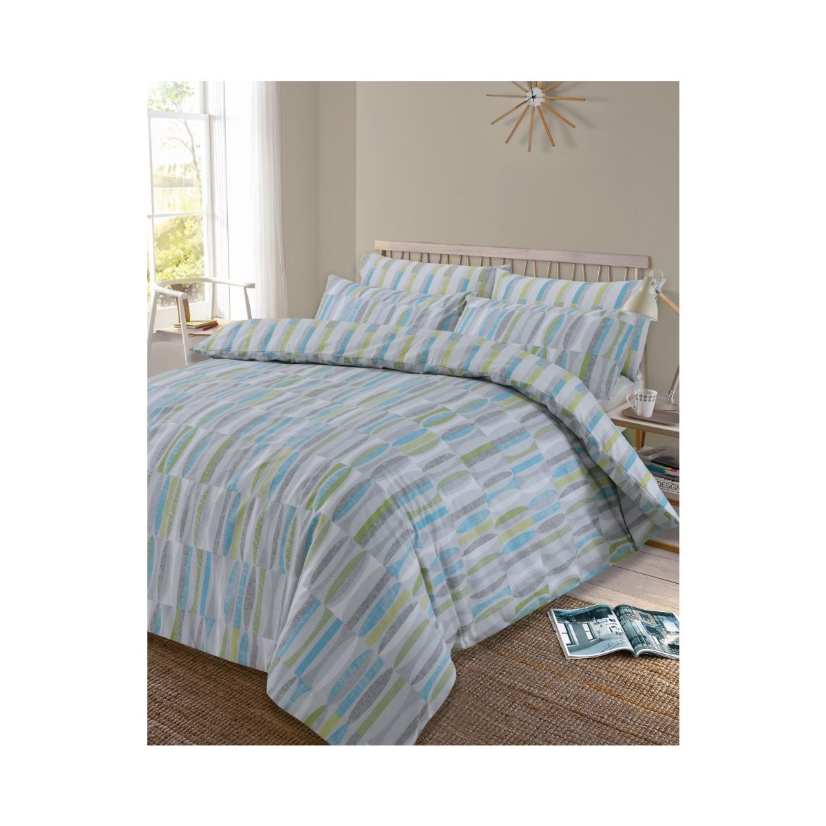 OHS Ellipse Duvet Cover with Pillow Case Reversible Geometric Bedding Set, Teal Green Grey Silver - King