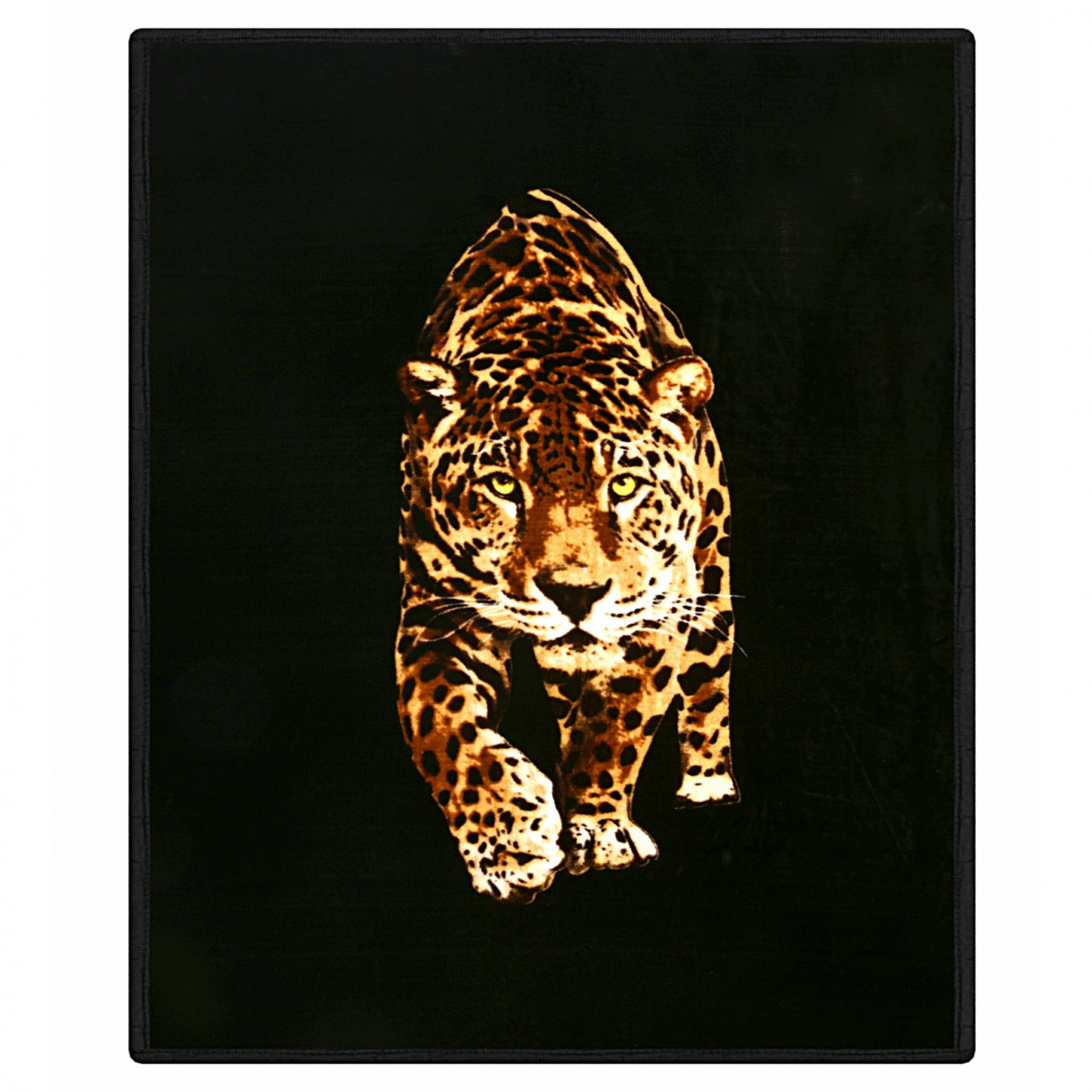 This soft faux fur leopard animal print blanket is ideal for use as a throw over furniture such as couches, beds and sofa beds. This thick cosy and snug throw has a realistic 3D design, on a black background, which is sure to add warmth to your bedroom. This item makes the perfect gift, whilst being ideal for use when travelling or camping as it can be easily rolled up and stored in a bag or in the car.