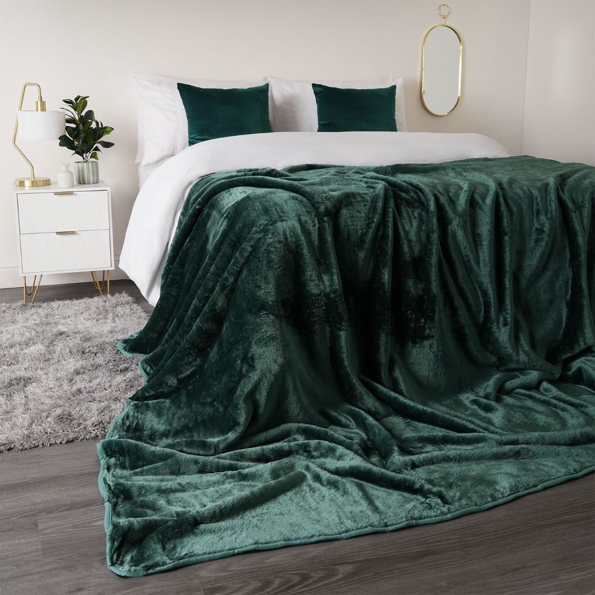 OHS Faux Fur Mink Throw, Forest Green - 150 x 200cm